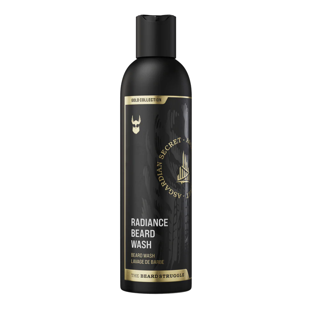 Radiance Beard Sjampo. Denne rensen reduserer kløe, mykgjør skjegget og fremmer et fyldigere, mer naturlig utseende uten å skade eller tørke ut ansiktshåret.